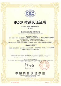 2015年 --→ 取得美國FDA的FCE-SID注冊號碼。 公司還通過了ISO 9001:2008 質(zhì)量管理體系認(rèn)證、HACCP 體系認(rèn)證。